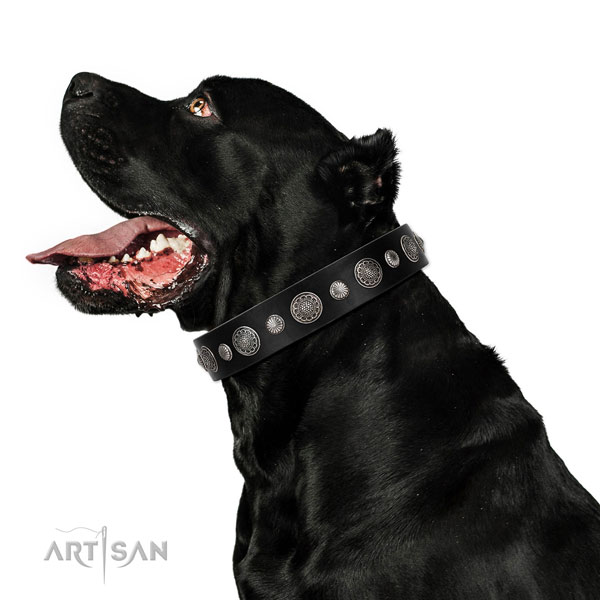Strong dog collar of leather with designer embellishments