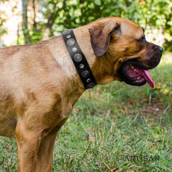 Cane Corso studded genuine leather collar with corrosion resistant fittings